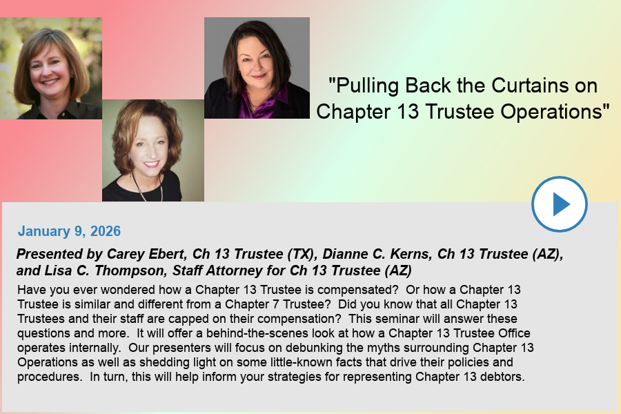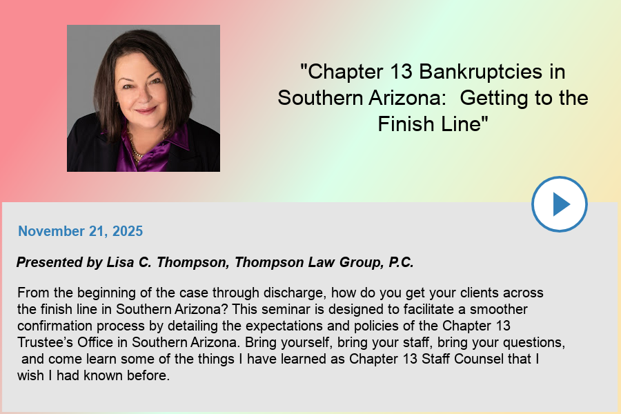 Arizona Consumer Bankruptcy Counsel, LLC "ACBC" has hosted numerous programs related to bankruptcy, attorney ethics, and law office management, which are recorded and available on ACBC's YouTube Channel. The videos below are available to the public.