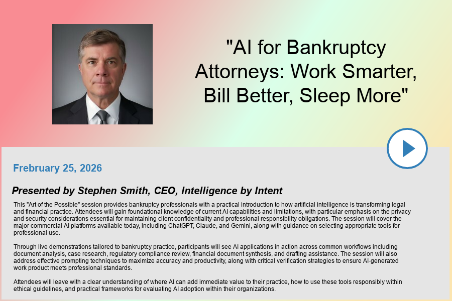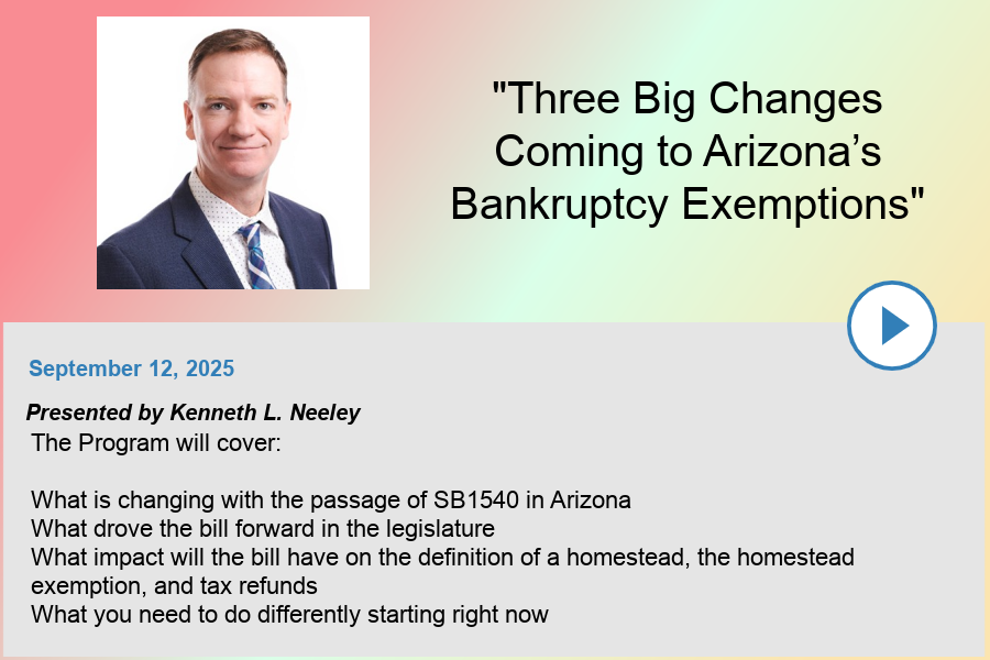 Arizona Consumer Bankruptcy Counsel, LLC "ACBC" has hosted numerous programs related to bankruptcy, attorney ethics, and law office management, which are recorded and available on ACBC's YouTube Channel. The videos below are available to the public.